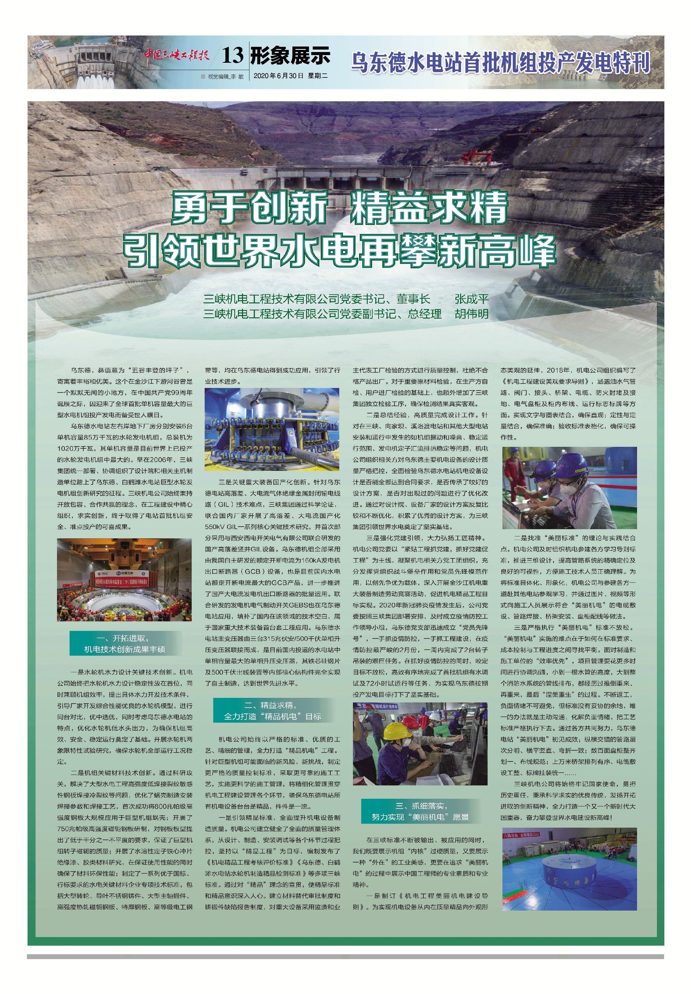 中國工程院院士王浩表示,伴隨烏東德水電站建成投產,一條世界級的清潔能源走廊即將形成,這是三峽集團踐行習近平生態文明思想的生動實踐,也是我國以綠色發展推動高質量發展的成功典范。[詳情]